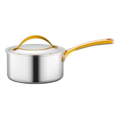 Reduce sauces and simmer soups with ease using this 2 quart sauce pan. Featuring a smooth surface, this sauce pan facilitates easy stirring while its flat bottom reduces heat exposure, spreading heat along the base and sidewalls.