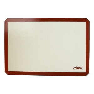 This well-designed Winco baking mat provides a non-stick baking surface and ensures even heat distribution for baking your culinary creations to perfection. This baking mat is made from top quality woven fiberglass with food grade silicone for unbeatable durability and temperature tolerance between -40°F and 480°F. Reusable 3000 times without using grease. An indispensable addition to any bakery, cafe, or restaurant. To clean, wash with mild detergent and water. Dry before storage. Do not cut on mat. Do not use if mat is cut. Use smooth side up. Do not use on stovetop element, under broiler or on grill. Do not expose to open flame.