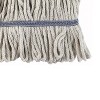 Keep floors nice and clean with this looped-end poly-cotton blend mop head. The Winco MOP-32W mop head is made of a highly absorbent, four-ply cotton and poly blend—a material that's ideal for everyday cleaning and disinfecting. Its looped-end style is resistant to fraying and unraveling; this design provides more floor coverage than affordable cut ends. Because the blue tailband fans the mop strands out, it offers even more surface coverage.
