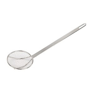 Featuring a concave net, the Winco skimmer facilitates fast drainage of hot liquids while its long, sturdy handle keeps your hands away from the heat source. Perfect for small, solid foods like meatballs or dumplings. Ideal for any residential or commercial kitchen. There is also a hanging hole for convenient storage.