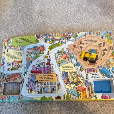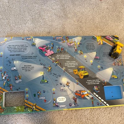 - This large, chunky board book comes with a wind-up yellow digger and four embedded tracks.