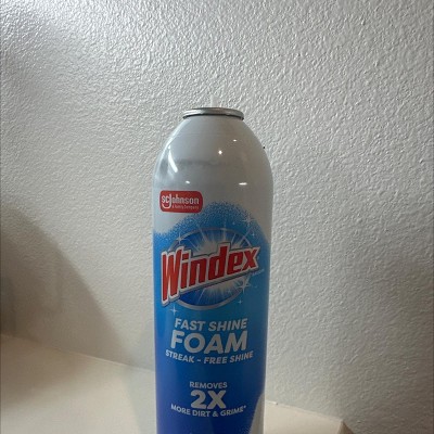- Discover the streak-free sparkle of Windex Fast Shine Foam, the no-drip foam glass cleaner, Cuts through dirt 2X faster than the leading aerosol glass cleaner* *vs Sprayway Foaming Glass Cleaner, based on grime removal from a