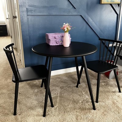 - Simple round table and 2 Windsor chairs offer simple style