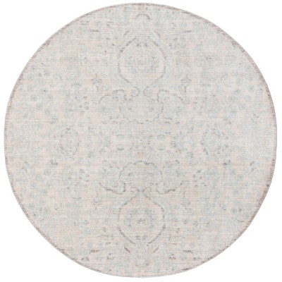 The rug's intricate pattern features a symmetrical design with botanical motifs, adding a touch of tranquility and old-world charm to your space. The soothing aqua detailing on a cream background creates a serene atmosphere, ideal for a living room, dining area, or bedroom seeking a subtle splash of color.