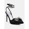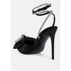 Oozing femininity and sensuality, these high-heel stiletto heels are the epitome of beauty. A rhinestone jewel bow on the pointed top on an exquisite satin in the backdrop makes them the best must-have heels! What's more? The ankle straps are embellished with rhinestones and fastened securely by a pin buckle for an ultimate stylish fit.
