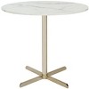Ideal for a cocktail or an espresso, this contemporary round side table elevates any living room with its refined minimalist style. Designed with sleek brass and white marble finishes, its rich blend of textures and clean lines make it a new classic.