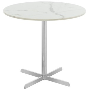 Ideal for a cocktail or an espresso, this contemporary round side table elevates any living room with its refined minimalist style. Designed with sleek chrome and white marble finishes, its rich blend of textures and clean lines make it a new classic.