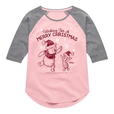 Girls' - Winnie the Pooh - Pooh & Piglet Warmest Wishes Christmas Shirt Tail Raglan Graphic T-shirt