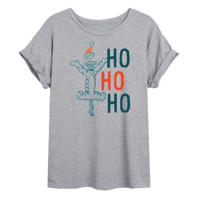 Disney Winnie The Pooh - Tigger Christmas Ho Ho Ho - Juniors Cropped Cotton Blend T-Shirt - Step into the Hundred Acre Wood with Winnie the Pooh graphic apparel—featuring Pooh, Tigger, Eeyore, and Piglet in cozy, nostalgic styles for all ages.