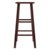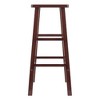 Winsome Wood's Carrick Bar Stool with square seat offers a refreshingly different take on the fundamental bar stool. Made of solid wood in a rich walnut finish, the 1"" thick seat is just over 12"" square, giving you plenty of room at the bar or a bar height table for snacks, a drink with friends, or working on your laptop. Four sets of crossbars make for a sturdy and balanced stool while providing footrests at two different heights. Along with the smooth, rounded edges of the seat, the warmth of the wood grain will set a comfortable and welcoming tone in your den, dining area, or media room. The bar height seat is 29""H and like most Winsome stools is also available in a counter height. The stool is shipped in a single box that includes the hardware necessary for assembly. Replacement part request can be submitted directly to the manufacturer within 60 days from date of purchase.