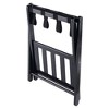 Welcome overnight guests with the Winsome Wood Raya Luggage Rack with Shelf. The styling is classic and simple, made with a polished solid wood frame in a contemporary black finish with black nylon straps. Your guests will appreciate the top rack for their luggage and the lower shelf to keep shoes off the floor, helping to keep the guestroom neat and uncluttered. The rack is foldable to a slim 3"" deep, easy to tuck away in a closet or against the wall. A strong frame with substantial crossbars and 1.5"" wide straps can support a suitcase up to 40 lbs., while the shoe rack can hold up to 25 lbs., making it a great additional storage rack for a smaller luggage if needed. Keep a Raya Luggage Rack in every bedroom to easily unpack your own bag after a long day. The rack is ready to set up right out of the box with no assembly required.