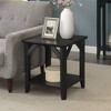 Bring rustic warmth and natural charm to your home with the Winston End Table with Shelf by Breighton Home. Drawing inspiration from cozy cabins and timeless farmhouse design, this versatile accent table adds character and function to any setting. A unique corner cutout design gives it a distinctive silhouette, while a spacious tabletop and open bottom shelf offer ample room for displaying décor, storing books, or keeping everyday items within reach. Crafted from durable manufactured wood with a smooth woodgrain finish, this table is built to last and easy to maintain. Its lightweight design makes rearranging effortless, whether placed beside a sofa, in a reading nook, or next to the bed. Available in a variety of finishes to complement any décor style, the Winston End Table coordinates seamlessly with other pieces from the Winston Collection, sold separately.