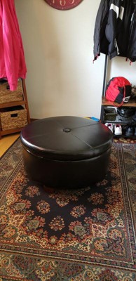 Winston Large Round Button Top Storage Ottoman Faux Leather Black - HomePop