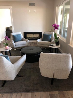 This ottoman is perfect in my front room in the middle of 4 low backed swivel chairs. It does not look “faux” and I have already had several compliments on it. I did not put the legs on it and is the perfect height for my chairs and looks great