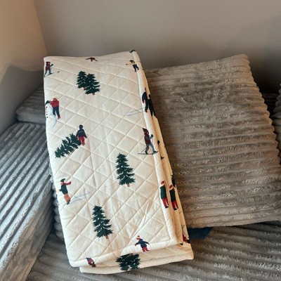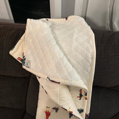 Winter Fun Quilted Jersey Throw Blanket with Faux Shearling Reverse Ivory - Room Essentials™