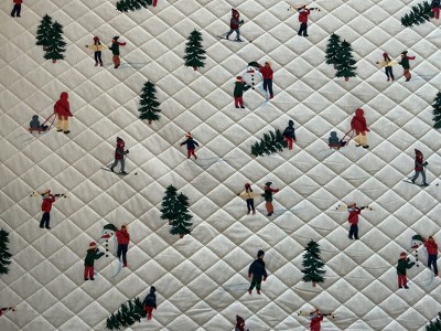 [This review was collected as part of a promotion.] I ordered this throw blanket to have as an extra on our bed in the winter. It’s sometimes nice to have a cozy blanket to throw on when just sitting in bed, and don’t want to use all the sheets. This throw is a cute design with all the winter skiers and the fur on the underside. I like the quilted diamonds on the blanket, but the quality is just ok. The fur seems to shed quite a bit and the blanket is fairly thin.