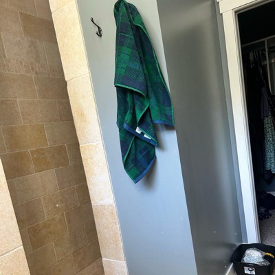 [This review was collected as part of a promotion.] My pictures don’t do the rich colors justice. This purchase was based on nostalgia. This rich spruce and navy plaid towel reminds me of a bath robe my dad had when I was young and I it makes me feel like I have a little piece of my memories of him with me. The quality of this towel is great. It’s soft, thick, and the perfect size. Additionally, I’m impressed with the addition of the towel hang tag, that easily allows you to hang the towel up to dry. I highly recommend this for holiday use or year round use. I received an incentive to write this review.