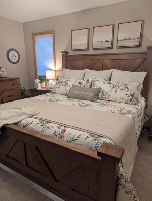 [This review was collected as part of a promotion.] I love love the design of this quilt. It is heavy enough for winter but also pretty enough for all year round! This quilt is made very well and the stitching is so pretty! I love how it will fit a full or even queen size bed!! The design is very holiday forward and I love that because I change quilts based on seasons and holidays. It is easy to wash and dry and it retains it's beautiful colors and shape! The shams fit perfectly on any size pillow and are also easy to take care of. I love how trendy this set is and know it will last years to come