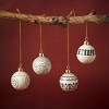 Handcrafted from lightweight papier-mâché, these ornaments bring a modern twist to holiday tradition. Each piece is painted in soft tones with delicate black motifs, blending folk charm with minimalist elegance. Beautiful clustered on a tree or tied to gifts, they add a thoughtful, artisanal touch to the season.