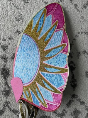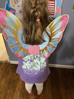 These sparkly wings are fun for young fairy fans. The design is eye-catching, with bright colors and gold shimmer. The stiff structure helps them stay aloft instead of sagging. The only drawback: getting the wings on is a bit tricky and not always a solo endeavor for littles.