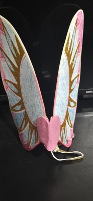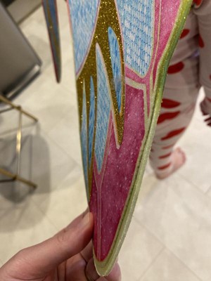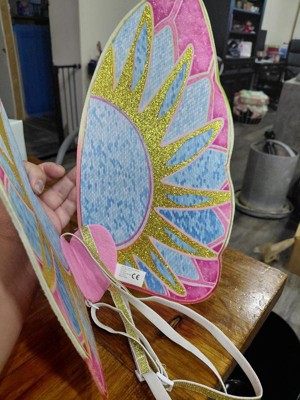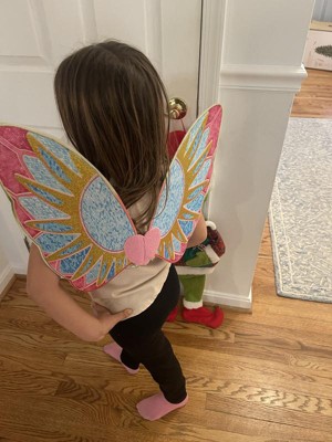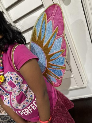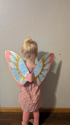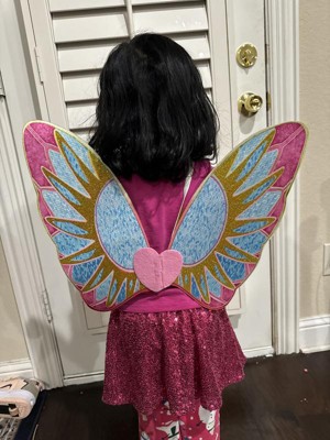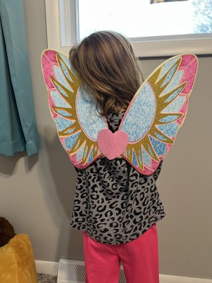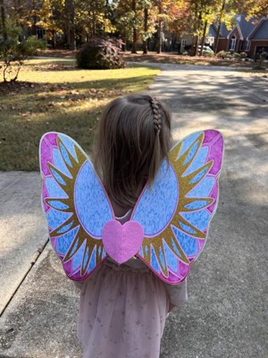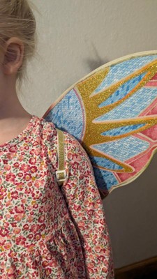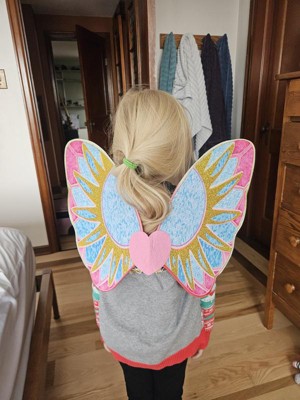 These fairy wings are stellar! We love the sturdy construction of the wings themselves - they stay up perfectly - and the wings fold for easy storage when not in use! And I love how the straps are adjustable so they can grow with the child or be easily used among a variety of children. Very colorful, sparkly, and fun!