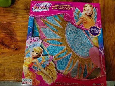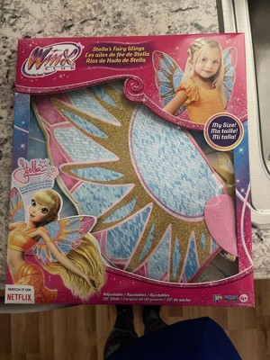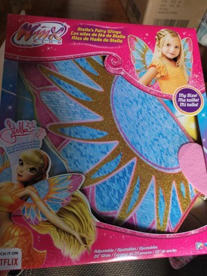 Winx Club based on the new show coming on Netflix. Your little one will love these cute Stella Fairy Wings. The straps are adjustable to fit your little one. They are elastic and can give a stretch a bit to fit. The gold glitter makes your little one feel magical.