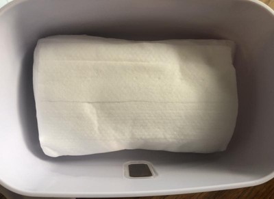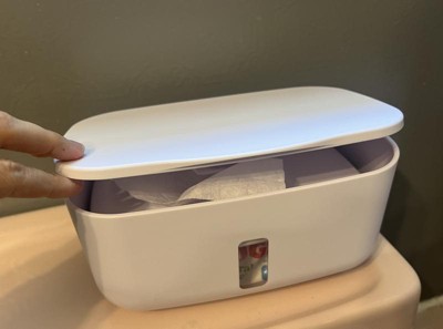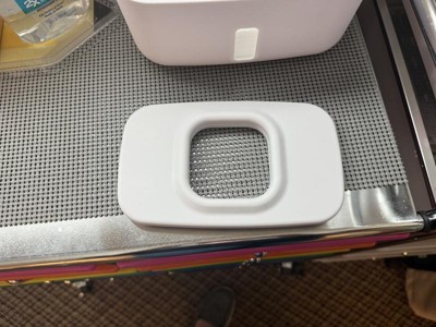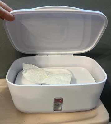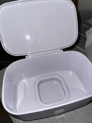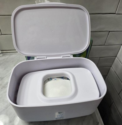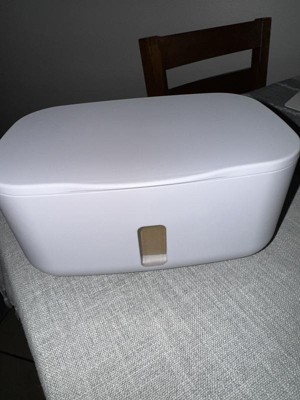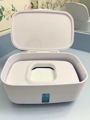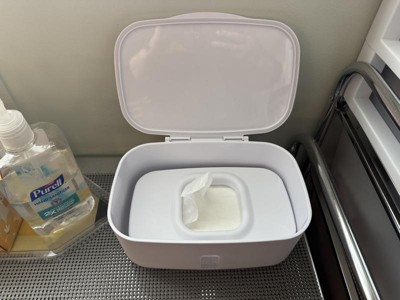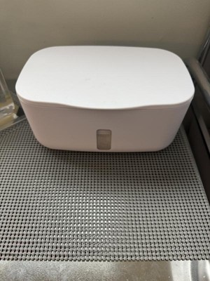 Non heated wipe dispenser. I like that this holds up to 100 wipes and stops the wipes from drying out within their original sticker closure on most brands. The weighted plate keeps the next wipe at the top so you don’t have to use your nail to scrape them up.