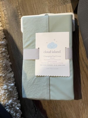This Changing Pad Cover from cloud island™ is sure to make you worry less when it comes to changing your baby's diapers. Designed to fit standard-size changing pads, this wipeable changing pad cover is made from a soft fabric blend to help keep baby comfortable during diaper changes. It's designed with contoured sides to help keep the changing pad dry from leaks, while the while the wipeable design allows you to tackle small messes during diaper changes easily. Showcasing a solid sage green hue, it's sure to add a pop of color to your nursery decor.