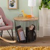 Help keep their space organized with this Wire Storage Table from Pillowfort™. A functional, stylish alternative to traditional end tables, this wire storage table features a removable wooden tabletop to decorate with photo frames, small souvenirs, or potted plants, or to keep cups, books, toys or more. Below, the U-shaped metal wire frame offers them storage space to stash anything from toys, board games, seasonal items and small clothes to craft supplies. The wired design lets them find what they're looking for among the contents without having to remove the top, while the handles make it easy to carry. The tabletop's natural wooden finish with a gray metal wire frame makes this kids' storage table easy to incorporate with a variety of decor styles.