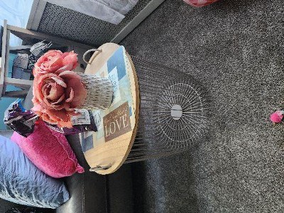 I had higher hopes for this item in terms of quality. The metal wire of the basket is just a little stronger than a clothes hanger and was bent in shipping. The tabletop is not solid wood, with rough cut edges where it is glued together- it’s also unfinished and needs a sealer to use as a side table without getting filthy fast.