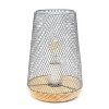 This metal 9" table lamp with mesh shade will add ambiance and style to any room in your home! With a simple, lattice cut out design and natural wood base this lamp illuminates beautifully. Undoubtedly the perfect accent piece to your home, this industrial lamp will not disappoint! HELPFUL TIP: To get the complete vintage look, we recommend using a decorative Edison/Vintage bulb (not included).