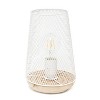 This metal 9" table lamp with mesh shade will add ambiance and style to any room in your home! With a simple, lattice cut out design and natural wood base this lamp illuminates beautifully. Undoubtedly the perfect accent piece to your home, this industrial lamp will not disappoint! HELPFUL TIP: To get the complete vintage look, we recommend using a decorative Edison/Vintage bulb (not included).