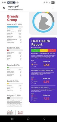 I did a basepaws vs Wisdom comparison I got different answers but Basepaws was more indepth. I see now Faith has traits like a Sphynx and looks like a toy bob colorpoint. I see Phoenix as a baby Cornish Rex due to face and body shape. Basepaws went into real detail where Wisdom was very minor and quick in its details. I tried not to show photos so the dna would tell the truth and not pictures.
