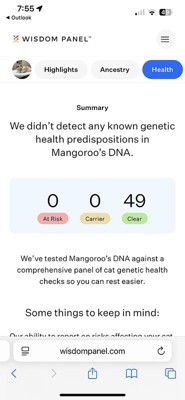I won’t lie, I mainly wanted to test my cat to check for the MDR1 gene because I’m a helicopter parent. But the more I researched Wisdom Panel and found out ALL that they had to offer, I was so impressed. Finding out that my very floofy orange and white tabby is 13% sphynx was a very hilarious surprise. So glad I can rest easier knowing she is not predisposed to over 40 different conditions and diseases, knowing her blood type was also very beneficial information in an emergency. Definitely recommend and will be ordering for my dogs!