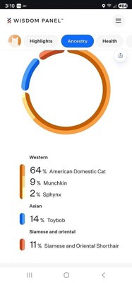 We have submitted 5 cats to Wisdom Panel and are now confident the results are inaccurate. We have a bobtail who came back with results of having a long tail. Fur types have been way off and the breeds are mostly just generic tabby cat, offering little to no insights. Not worth the money.