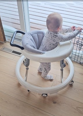 I am very satisfied with this baby walker. It is very sturdy, stable, and easy to assemble. The design is comfortable and safe, ideal for babies aged 7 to 18 months, allowing them to move freely while developing their balance and coordination. The wheels glide smoothly, and the seat is wide and comfortable. The material also feels high-quality and durable. Without a doubt, it's an excellent purchase, and I highly recommend it to anyone looking for a safe and practical product for their baby