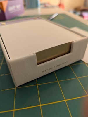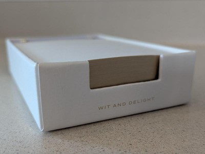 This is a cute pad with nice paper thickness and quality. It’s a perfect addition to my work desk! That said, the “holder” is really just a fancy cardboard box. Still looks decent but would have preferred plastic or at least a bit better quality. Overall a decent and useful product.
