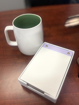 This is the cutest desktop notepad. I have to constantly jot things down during work and this helps me so much. It’s always on the desk and the pages tear away easily. Plus is super cute. The purple and gold are the cutest touch without being overwhelming or annoying.