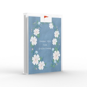 This 8-pack of greeting cards is elegantly illustrated by artist Ingrid Ramus, founder and owner of the Ramus & Co brand. Artwork features "thank you for everything" flowers.
