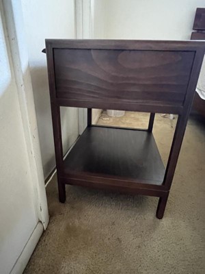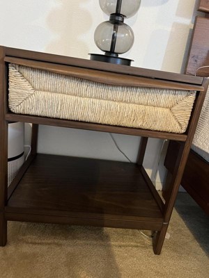 Accent your home with the textural flair of the Withania Accent Table from Threshold™. This accent table comes with a woven design on the drawer for a textured look that complements your decor well. It's designed with a lower built-in shelf to give you ample space for your vases, books and other items. Crafted from wood, this brown-finish accent table makes a practical addition to your home.