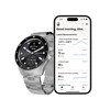 ScanWatch Nova is a 10 ATM watch with iconic diver style that features a unique sunray dial with Super-LumiNova indexes and hands, stainless steel casing with mirror-polished edges, and protective and anti-reflective sapphire glass. It includes a rotating ceramic and stainless steel bezel and an Oyster metal bracelet that tapers from 20 mm to 18 mm for a secure, comfortable fit.