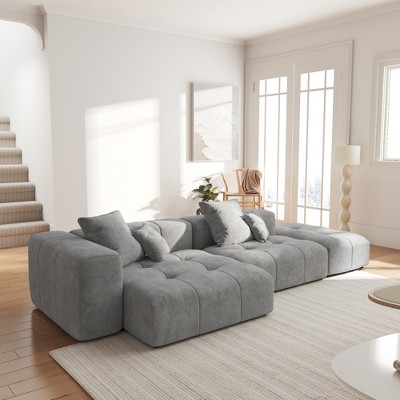 WJShome 104" L Shaped Sectional Couch,Modern Modular Sofa with Ottoman,Linen Deep Loveseat with Pillows Couches for Home and Apartment