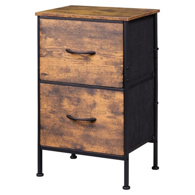 End Table with Fabric Storage Drawer, Steel Frame Bedside Furniture, Side Table for Bedroom, Dorm, Black and Rustic Brown