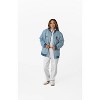 Step up your game day look with the Minnesota Lynx Denim Zip Bomber. Featuring a durable denim shell and quilted lining, this jacket combines streetwear edge with all-day comfort. Embroidered Lynx graphics on the front and back make your team pride stand out, while the bomber silhouette delivers a classic, versatile fit. Perfect for layering season after season.