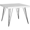 Casual and contemporary, the Wolcott Square Coffee Table appears to float on its dramatic black iron hairpin legs. Crafted of wood with a sleek white lacquer finish, this easy care table is always ready for cocktails and appetizers.