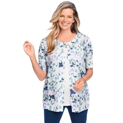 Woman Within Perfect Longer-Length Cotton Cardigan Sweater - 2X, White Butterfly Garden