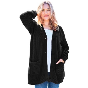 Woman Within Petite Button-Front Shaker Cardigan Sweater - 1 of 4