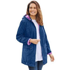 Woman Within Flannel-Lined Denim Jacket - 1 of 4