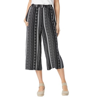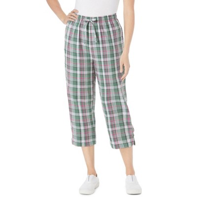 Woman Within Petite Seersucker Pull-On Elastic-Waist Pants