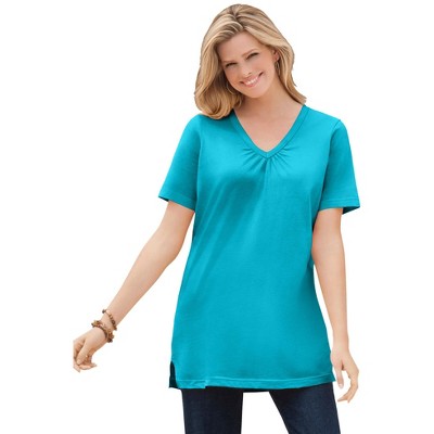 Woman Within Short-Sleeve V-Neck Shirred Tee